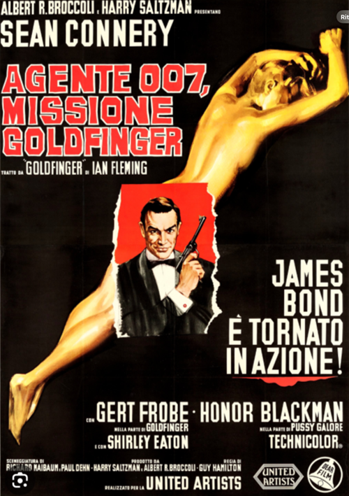 Come dicono le parole della canzone che e’ la centratissima colonna sonora cantata dall’allora sulla cresta dell’onda Shirley Bassey “ Goldfinger/ l’uomo dal tocco d’oro…” , e infatti ricopre d’oro una sua vittima, per farla morire per mancanza di traspirazione della pelle !